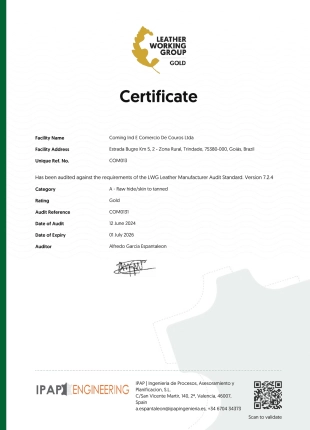 A certificação LWG (Leather Working Group) é um selo de responsabilidade ambiental e social para o setor de fabricação de couro, concedido pelo Leather Working Group. A certificação reconhece o compromisso do curtume com as melhores práticas socioambientais.